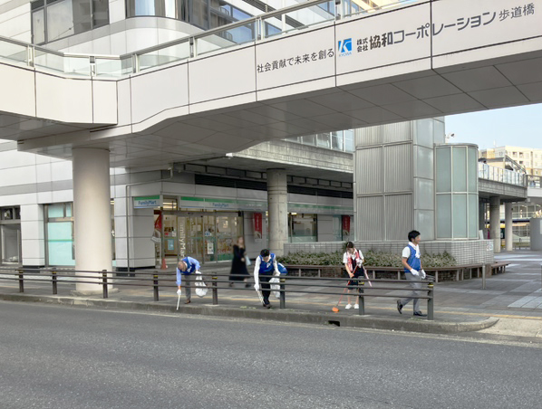 9月21日から始まる「秋の全国交通安全運動」に先がけて当社では地域貢献の一環として、駅周辺の清掃活動と交通安全運動を行いました。