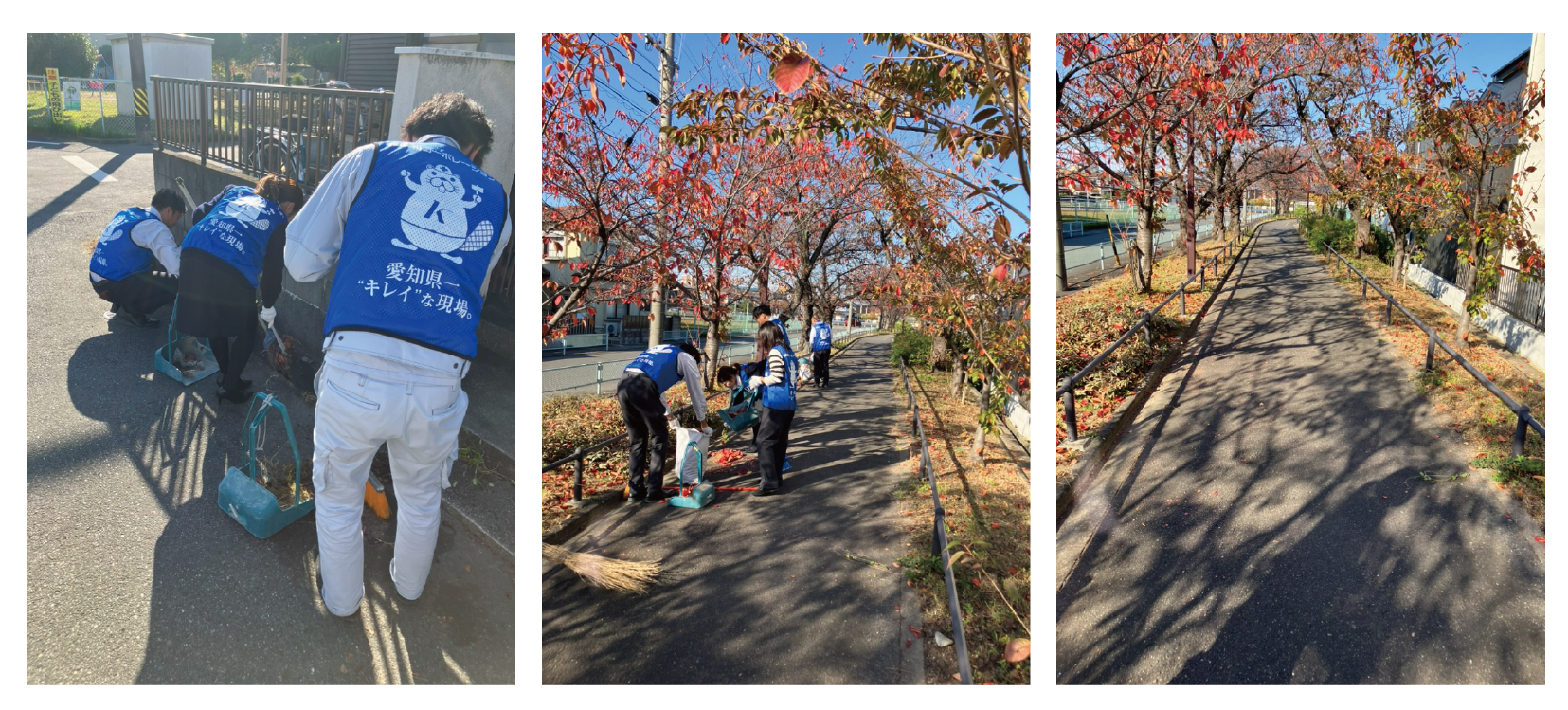 落ち葉の掃き出しや道路脇の雑草取りなど、細かな部分まで丁寧に整備いたしました。