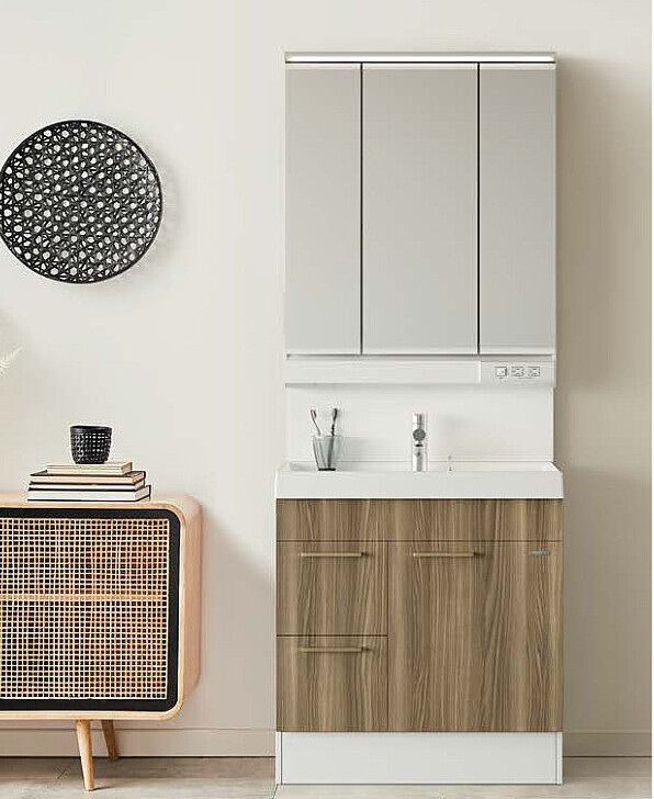 90cmのワイドサイズで、収納も豊富。 清潔で整然としたスッキリ洗面空間を演出します。