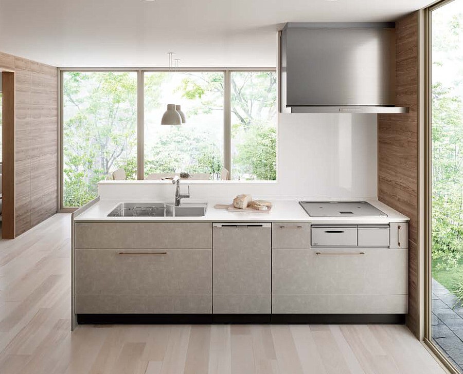 木や石の風合いを再現し、自然の美しさを取り入れたキッチンです。